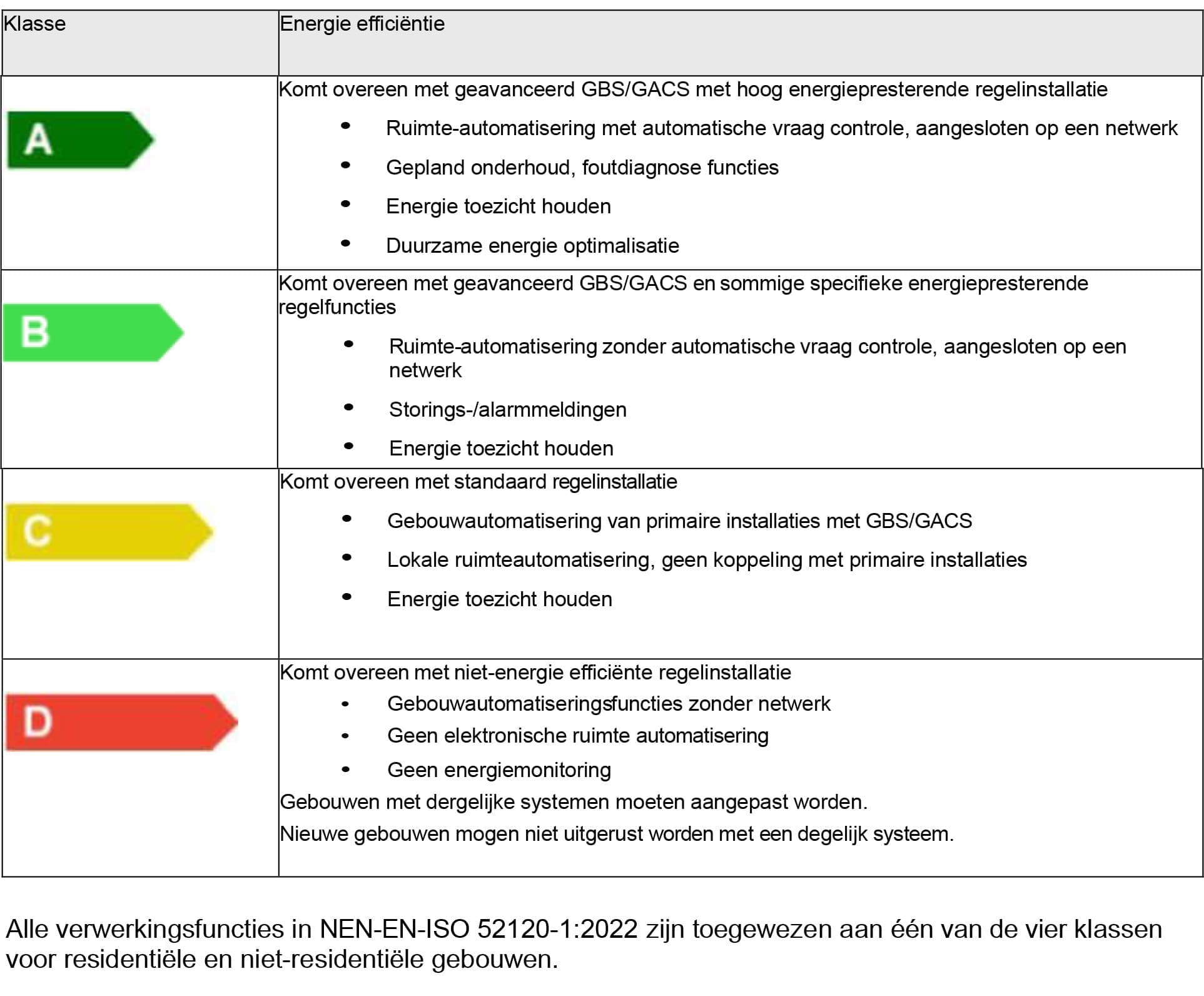Op blz. 35 van het document wordt uitgelegd wat de klassen A t/m D betekenen.